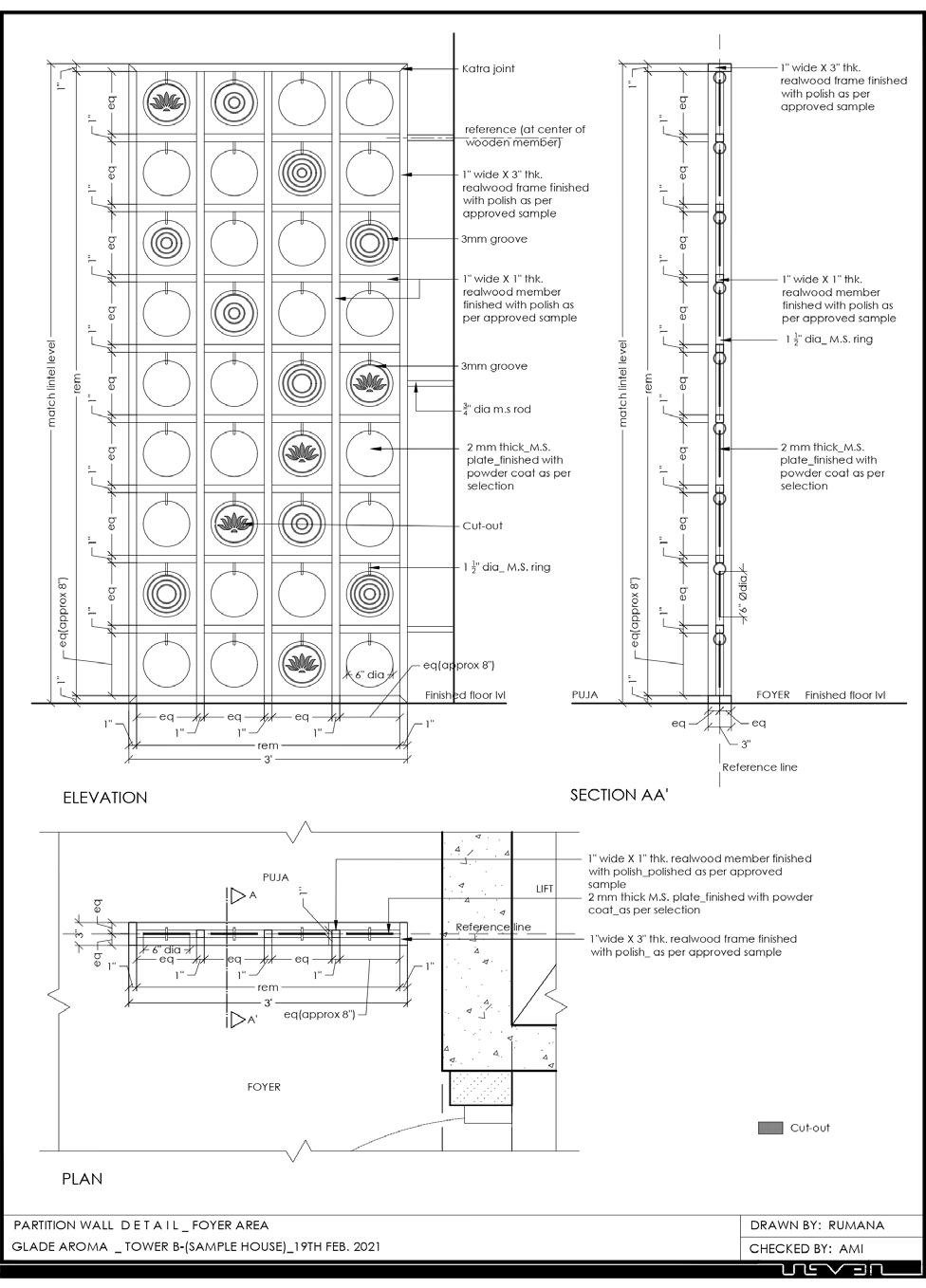 • Helped in generating deisgn options and 3d modelling of partition wall for living room and dinning table, working drawings for wadrobe, false-ceilings, kitchen for Aadil’s residence(33LE).