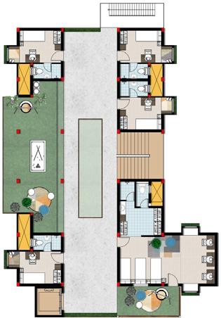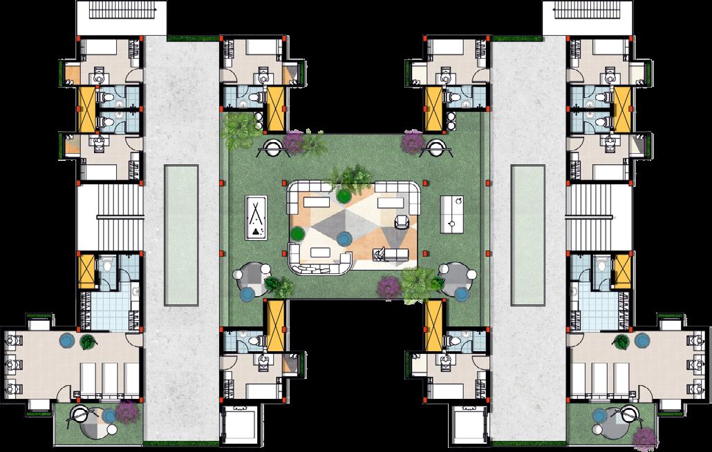 • The voids are strategically located to allow for increased air movement through building mass which promotes natural ventilation through housing unit.