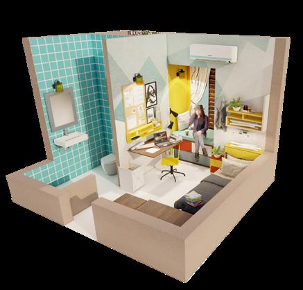 EXPLODED ISOMETRIC VIEW OF STUDENT ACCOMODATION