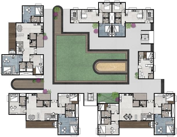 The green pockets are further subdivided into zones.The proposed amenities are designed for three floors.