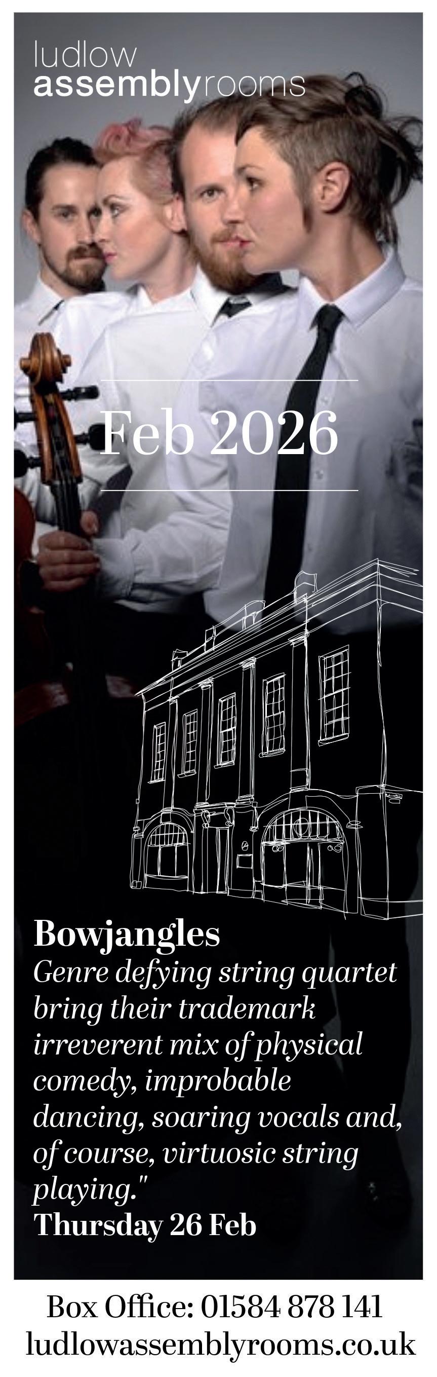 Mon - Yoga, 10.15am, £8. Julie Burdett 07780 905729. Mon 6pm, Wed 7pm, Thurs 10am - Tai Chi, £10, mikecoffeyemail@gmail.com Mon - Women’s Self Defense, 7.45pm, £10, mikecoffeyemail@gmail.com Tues - Evergreen Pilates, 9am, £8.50, Ryan 079848 16847. Wed - Pilates, 10am, £10 per session. Sarah on 07967 482510. Fri - Mindful Yoga, 11am, £48 per term, Sophie 07930 353118. Assembly Rooms, Ludlow, 01584 878141.