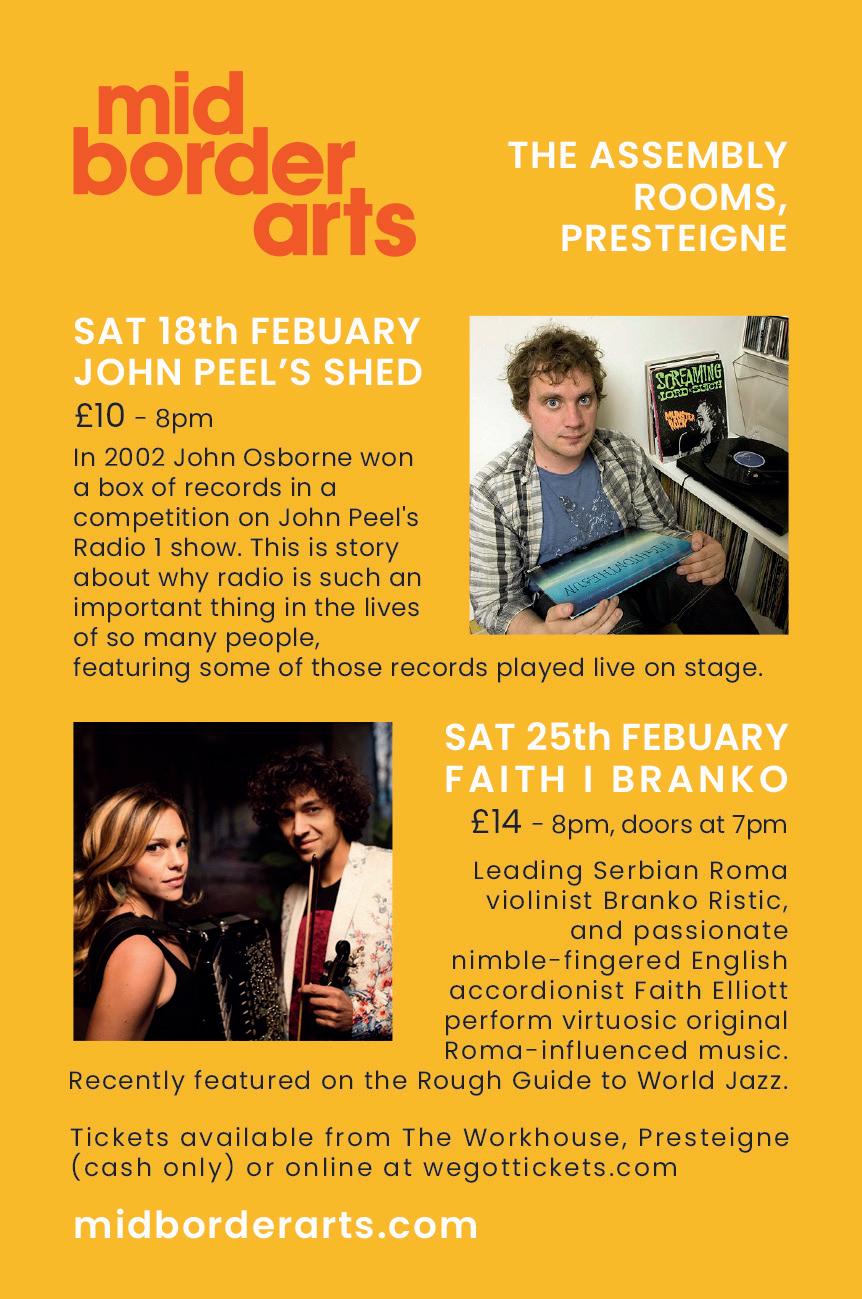 WORKSHOP LISTINGS - Single (dated) listings are free. Year round, ongoing workshops will cost £40 per year. Wed 1, Thurs 2 February & Wed 1 & Thurs March