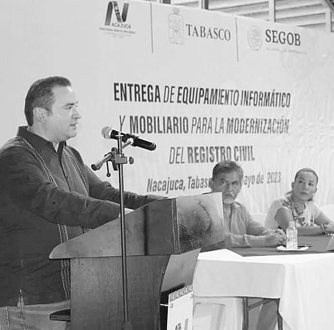 Por instrucciones del Gobernador Carlos Manuel Merino Campos, el secretario de Gobierno Guillermo Arturo del Rivero León realizó la entrega de equipamiento informático y mobiliario para la modernización de las oficialías del Registro Civil del Ayuntamiento de Nacajuca.