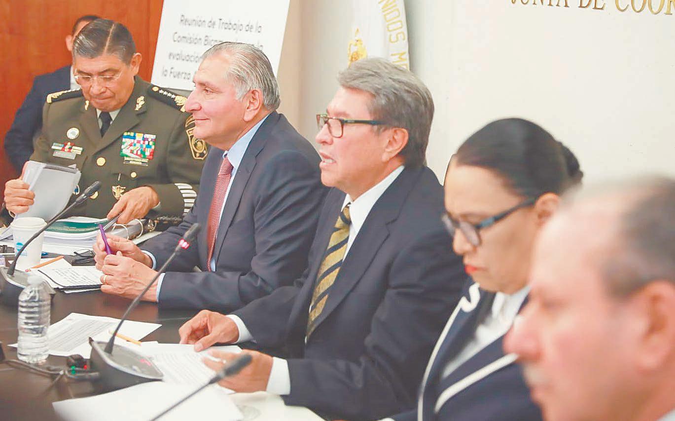 El titular de Gobernación habló al inicio de la reunión del Gabinete de Seguridad con los senadores y diputados que conforma la Comisión Bilateral que evalúa y da seguimiento a la actuación de la Fuerza Armada Permanente en el combate al crimen organizado, encuentro que después de ello continua a puerta cerrada.