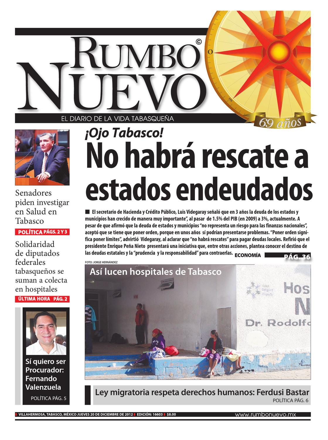 VILLAHERMOSA, TABASCO, MÉXICO JUEVES 20 DE DICIEMBRE DE 2012 EDICIÓN: 16603 $8.00