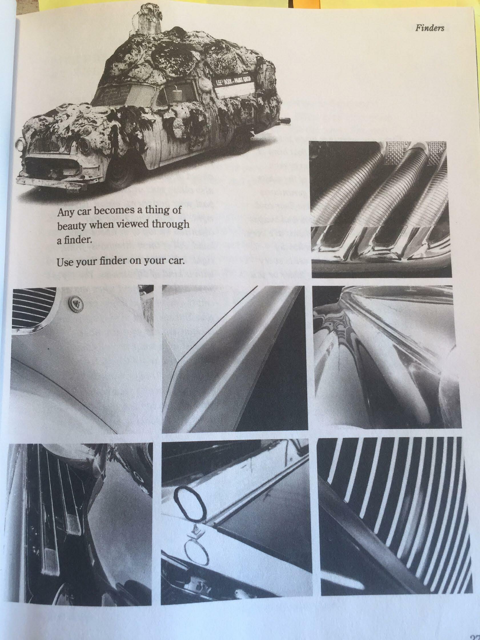 The Finders are described in the book based on her teachings, Learning By Heart: [The finder] is a device, which does the same things as the camera lens or viewfinder. It helps us take things out of context, allows us to see for the sake of seeing, and enhances our quick-looking and decision-making skills.