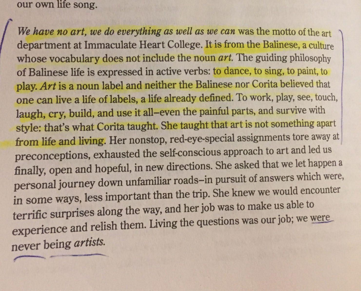 taken from Foreword in Learning by Heart: Teachings to Free the Creative Spirit by Corita Kent
