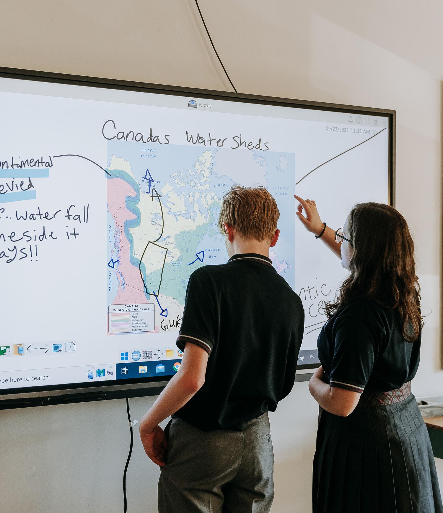 New interactive board technology in classrooms engages students in learning 21st-century skills. Touch screens allow our students to directly participate in lessons by moving or manipulating objects, filling in responses, and demonstrating their knowledge in collaboration with their peers. This innovative technology makes learning more multimodal, engaging, and rewarding.