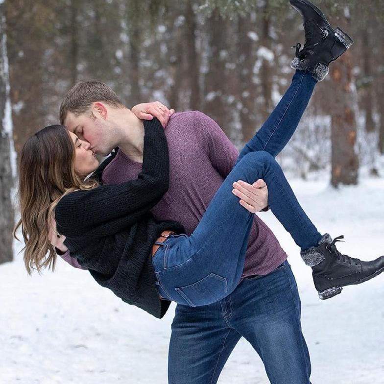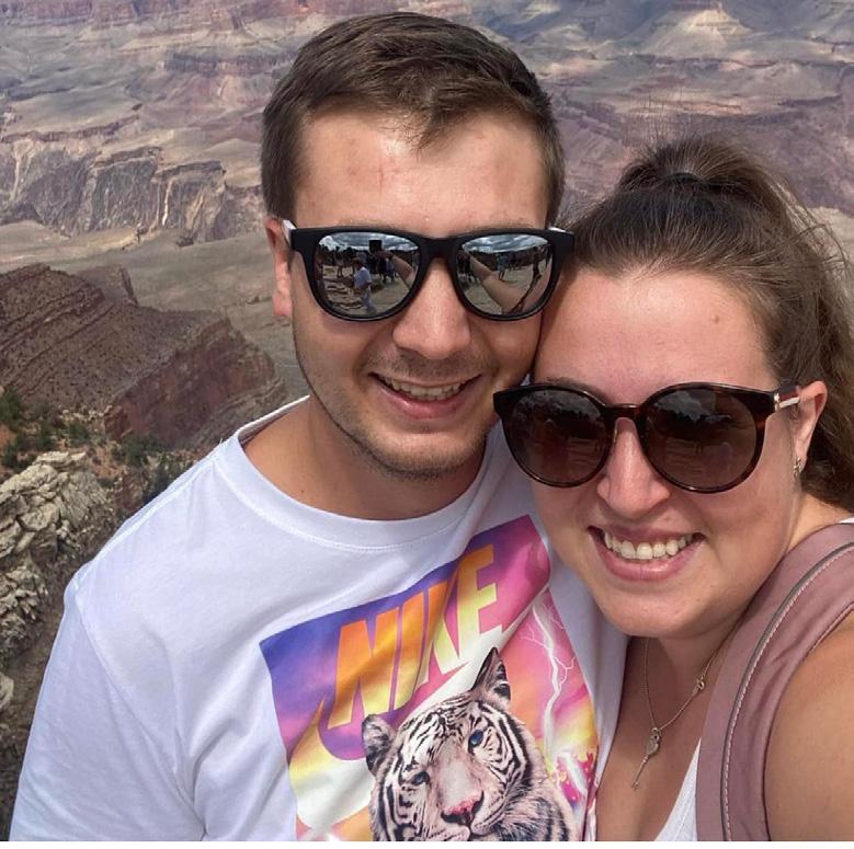 ADAM KEIRLE '22 who is studying masonry at SAIT and Ms. Mibelli.