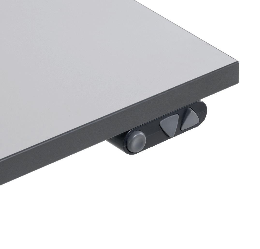 Kraftigt och stabilt höj- och sänkbart elbord med tvåknappsfunktion. Bordsskiva av högsta kvalité, tjocklek 40 mm.