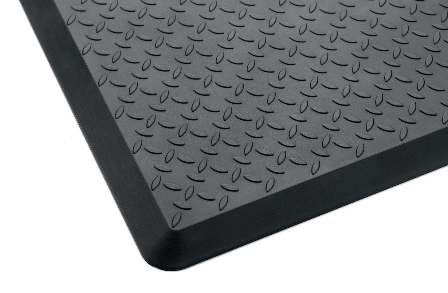 Mattan är tillverkad i polyuretan vilket ger en mycket skön känsla att stå på. Den mönstrade ovansidan ger bra halkskydd. Mattan är utvecklad för torra arbetsplatser som kräver stillastående arbete under längre perioder.