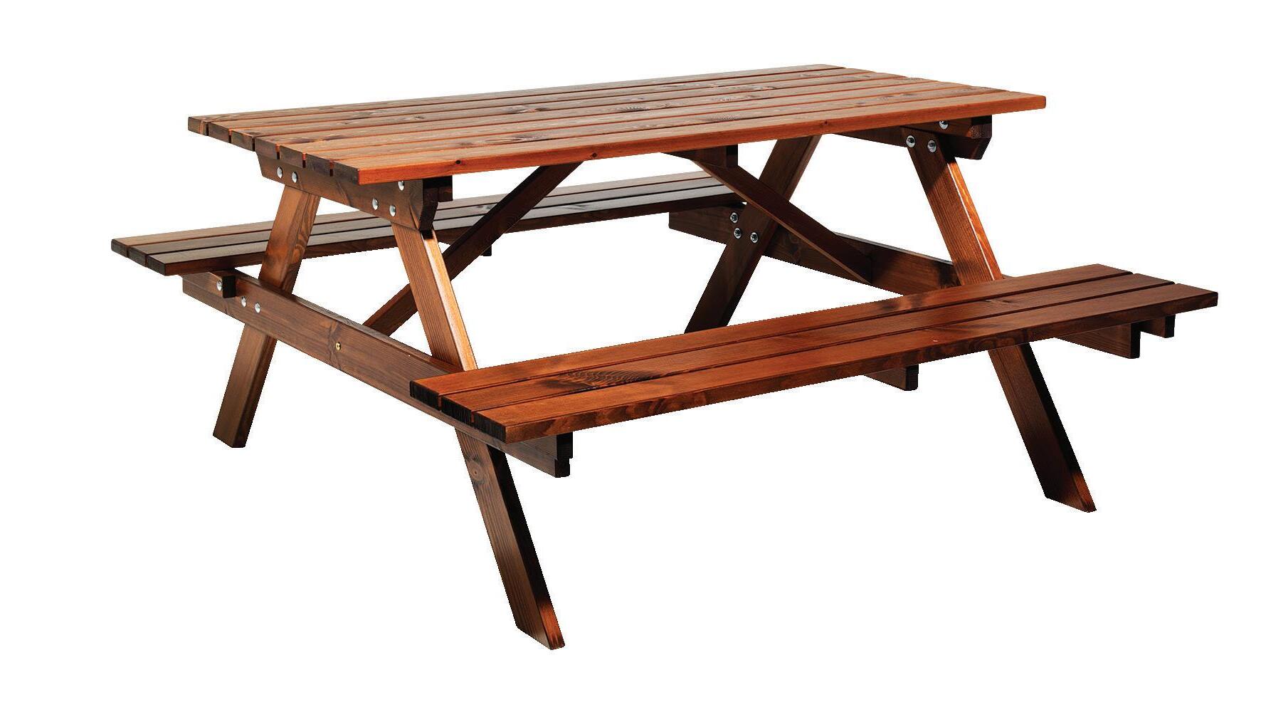 Ett enkelt picknickbord för bekväma matraster och uppehåll utomhus. Bordet har uppfällbara bänkar för att hålla sittytan torr. Levereras omonterad. Enkel att montera. 27 mm tjocka brädor. Bord LxB 1500x700 mm, H 730 mm. Sittbänkar LxB 1500x300 mm, H 430 mm.