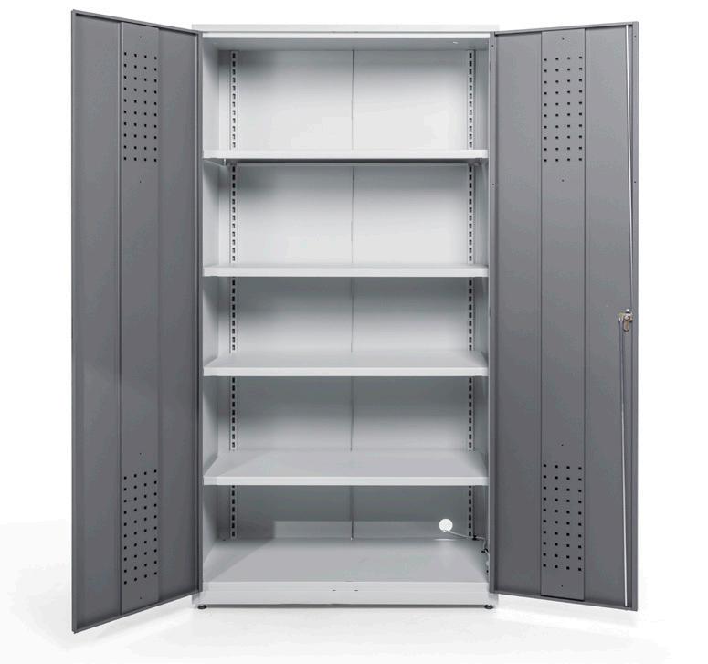 Gari är ett kraftigt helsvetsat verktygsskåp tillverkat i stålplåt. Extra styv och stabil konstruktion med flera förstärkningar och bockningar. Hyllplan som klarar upp till 100 kg, justerbara med 32 mm intervall. Utdragbara hyllor och lådor löper lätt på kullagrade gejdrar och är 110% utdragbara. Utrustat med ställfötter för ojämna golv. Rejäl 3-punkts espanjolett med cylinderlås eller elkodlås. Finns i 2 färger, ljusgrå (RAL 7035), mörkgrå (NCS S 6502B/~RAL7012).