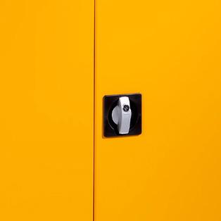 Miljöskåpet eurokraft basic övertygar med sin funktionalitet, tålighet och prisvärdhet. Det passar för säker lagring inomhus av vätskor i små behållare. Den robusta konstruktionen i stålplåt ger stabil kvalitet och tillförliltighet. Metallskåpet är pulverlackerat, stommen i ljusgrått och dörrarna i melongult. Låsbara dörrar utrustade med ett cylinderlås säkrar skåpet mot obehörig åtkomst. Täckta låsstänger skyddar mot smuts och minskar olycksrisken, eftersom det kontakt. Perforerade dörrar säkerställer god ventilation i miljöskåpet.