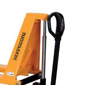 Smidig lösning som flyttar och lyfter gods till rätt arbetshöjd. Lättpumpad saxlyftvagn, pumpning via styrhandtaget. Mjuk och steg-lös sänkning även vid maxlast. Gummiklätt handtag för bättre och bekvämare grepp. Stödben går ner i golvet vid lyfthöjd på ca 650-700 mm, förhindrar rörelse och ökar stabiliteten.