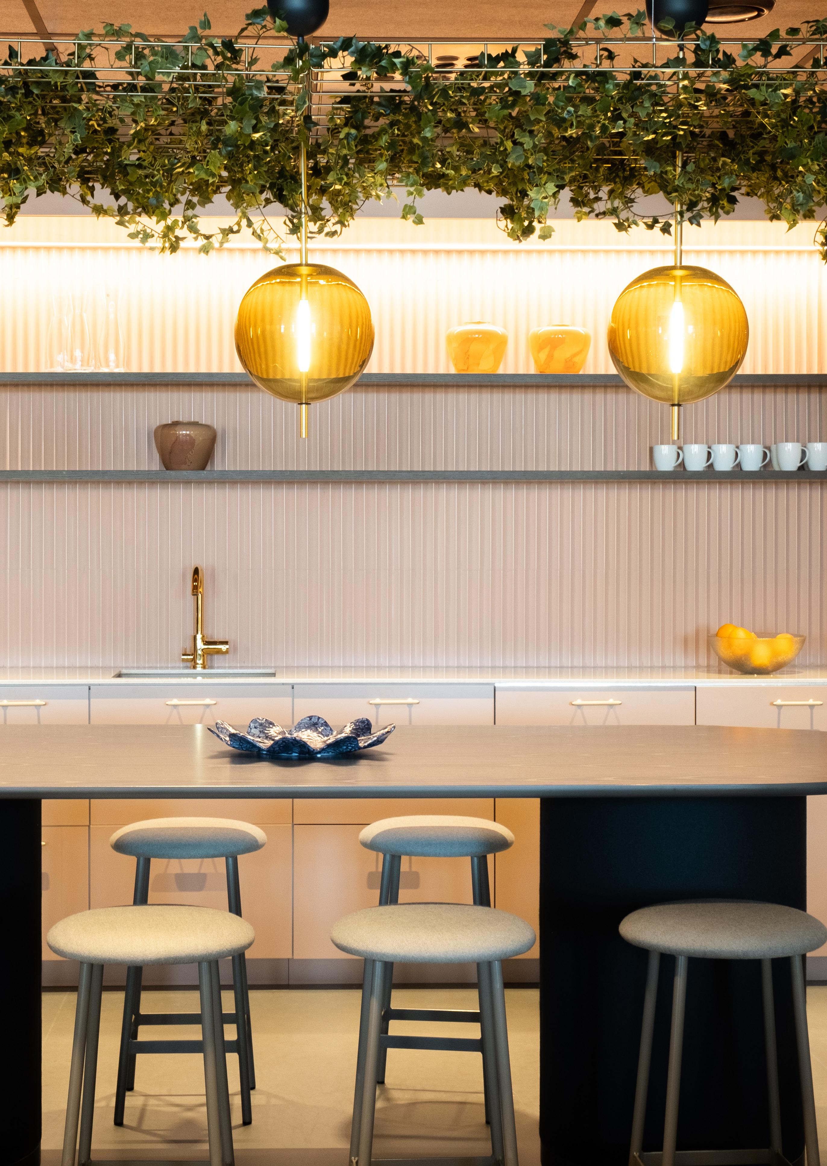 Det har vært viktig å skape forskjellige soner, med hver sin stemning. Som samtidig har en rød tråd og holder sammen. Klassisk apotek møter labb, gjennomgående i lokalet i forskjellige grader finner du klassiske detaljer, varmt treverk, historie og sjel, mix med de harde flatene med fokus på fagkunnskap og inspirasjon.