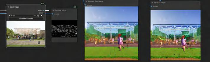 Using AI tools (e.g. Comfy UI) for regeneration design, new exhibit designs were created by combining the line drawings of the original images with the AI-generated keyword descriptions.