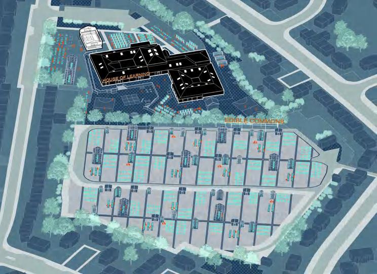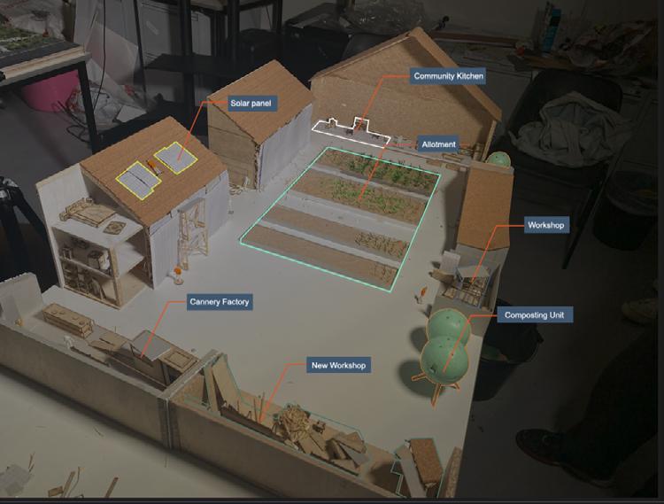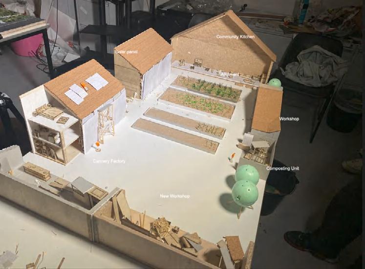 Identified under-use of the site’s supermarket and car park, as well as residents’ needs for fresh food and communal spaces, informing the project’s design direction. Using a 30-year time span as a framework, design the transition of the shared kitchen from a car park to a community centre, incorporating ecological restoration and functional changes.