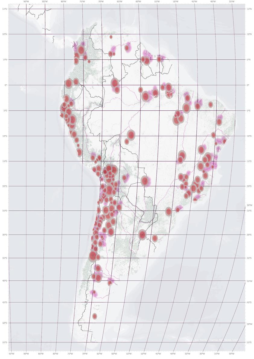 Tailings dams in South America and potentially radioactive areas