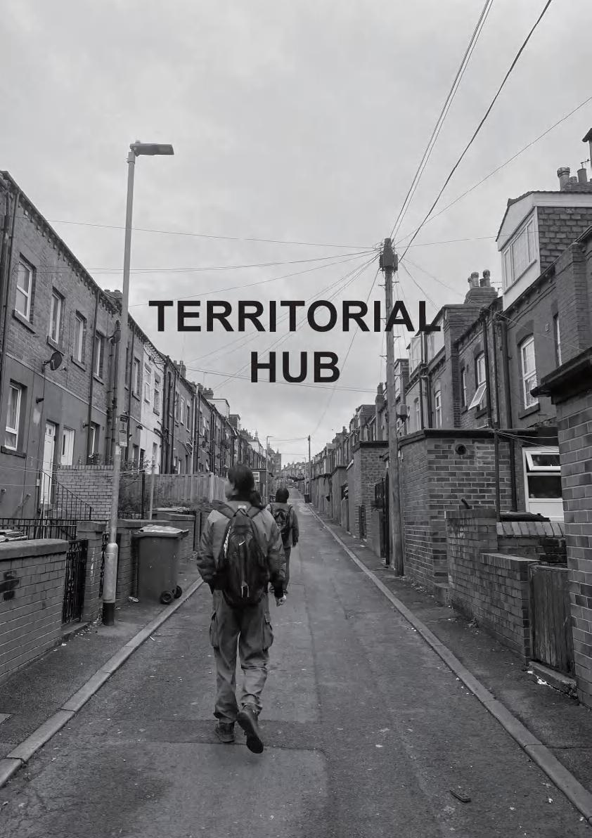 Territorial Hub are regenerative community ecosystems that link urban and rural areas. Through this model, we propose regional supply chains to integrate the production and distribution of food, materials and energy for social housing retrofitting and local community. We want to create a localized, self-governed, socio-ecological infrastructure for the community. The system incorporates housing association, workshops, cafés, council&CSA farms, community kitchens, schools and so on. Retrofit interventions prioritize locally sourced, bio-based insulation; community kitchens partner with schools to improve food education; and workshops provide both jobs and retrofit training, building technical capacity and social cohesion. Energy systems include rooftop solar panels and anaerobic digestion of kitchen waste, advancing circular resource flows. The model also addresses food and fuel poverty by linking neighbourhoods to wider rural ecosystems. Centering housing and food systems together, it challenges the urban–rural divide and advocates a transition to agroecological food networks under the principle of “retrofit sovereignty.” Bayswater is envisioned as a prototype within a 50-kilometer radius, integrating agriculture, social housing, and public enterprises. This includes new infrastructures such as retrofit hubs, land-based community kitchens, food hubs, community-supported agriculture, productive housing estates, composting centers, and agroforestry-based transitions. Advanced mapping tools are used to spatialize enterprises across this territory, embedding food and retrofit infrastructures as shared socio-ecological assets.
