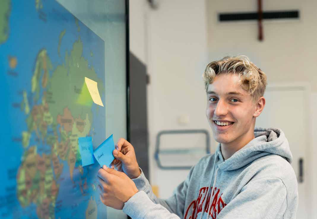 Verdensklassen 1.g 2.g 3.g Samfundsfag A Engelsk A Matematik B Dansk A Historie A 2. fremmedsprog A eller B Biologi C Kunstnerisk fag C Fysik C Naturgeografi C Religion C Oldtidskundskab C Idræt C Flerfaglige forløb SRP 2. fremmedsprog A eller valgfag A/B/C Naturvidenskabeligt fag B Valgfag C Studieretningsfag Obligatoriske fag Valgfag STUDIERETNINGER 2023-2026 • 49 I denne studieretning har du mulighed for at vælge tre valgfag. Det ene valgfag skal være et naturvidenskabeligt valgfag på B niveau. Det andet fag skal være et C niveaufag. Det sidste valgfag skal vælges mellem A , B og C niveaufagene. Hvis du har spansk som 2. fremmedsprog, så bortfalder dette valg, og spansk A bliver dit 5. A niveaufag. Valgfag - Verdensklassen Udbuddet af valgfag - se side 28-29