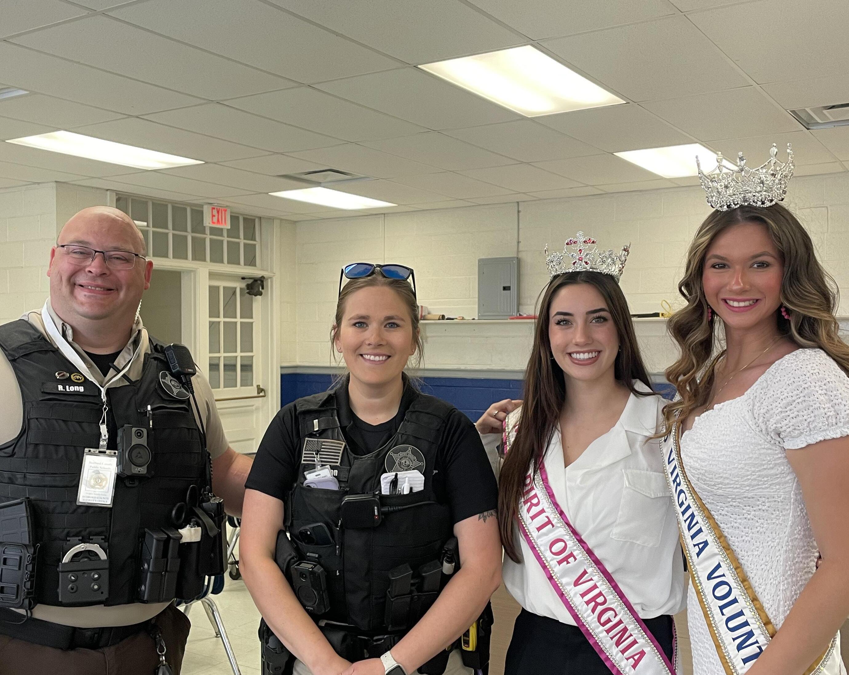 I would like to thank The Miss Virginia Volunteer Pageant for teaming up with the Bedford County Sheriff’s Office. With this amazing team we can teach our youth to be proud of their talents and choices that we make each day!