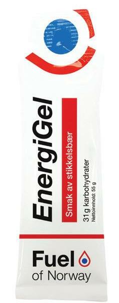 Vi har tittet på 13 av de mest vanlige energigelene på det norske markedet. Noen tyntflytende, andre mer konsentrerte. Alle har de et godt blandingsforhold av sukrose og fruktose for optimalt opptak, og mange av dem er allergivennlige, glutenfri, laktosefri og veganske. De fås i uendelig mange smaker, ofte preget av landet produktet er produsert i. Et godt eksempel er stikkelsbærgel fra Fuel of Norway, og cream vanilla cookie dough with a hint of french fries fra amerikanske produsenter. Neida, så ille er det ikke, men det er ikke langt unna. Det finnes til og med gels med