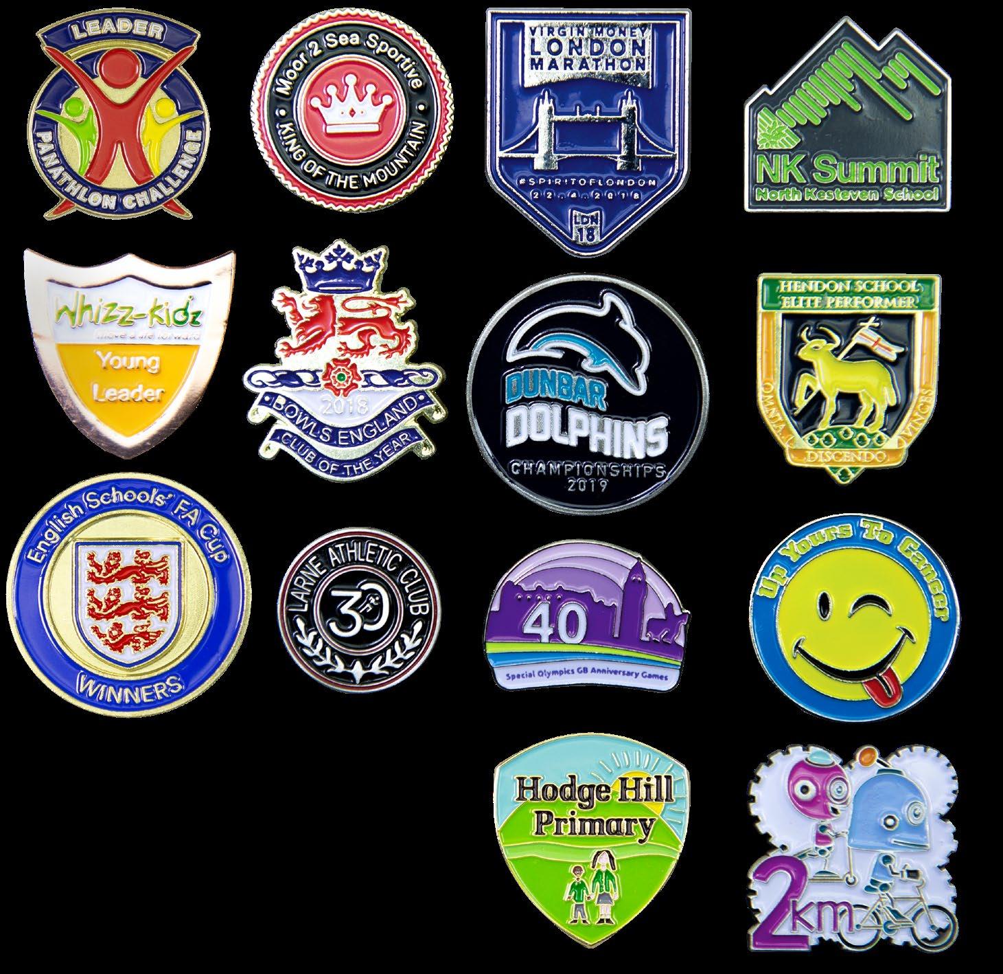 For any other sizes please contact us for a quotation. Lead time 4-6 weeks. 60p Each Fromonly All our Pin Badges are individually bagged as standard to prevent scratches. A series of Colour Sprayed Pin Badges with Enamelling produced for the Red Kite Games Qty 100+ 200+ 300+ 400+ 500+ 750+ 1,000+ Die Charge Price per Colour Sprayed Pin Badge 12-15mm 85p 80p 75p 70p 65p 60p POA £70 16-20mm 87p 82p 77p 72p 67p 62p POA £70 21-25mm 90p 85p 80p 75p 70p 65p POA £75 26-30mm 99p 94p 89p 84p 79p 74p POA £80 Sizes are measured to the longest point