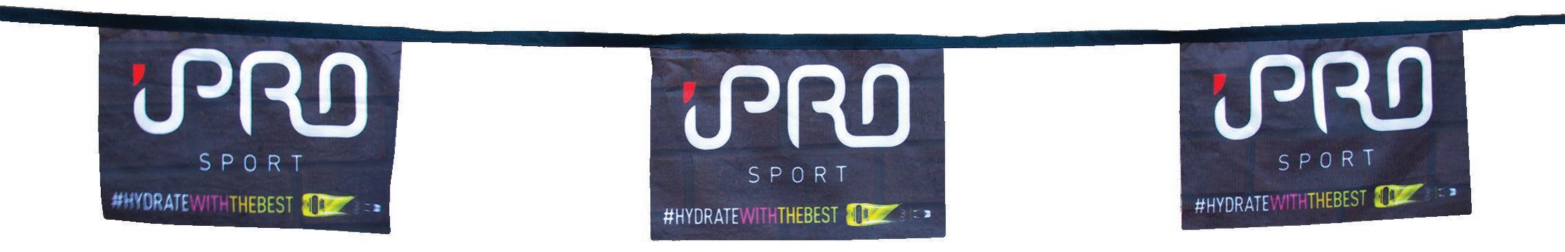 Three shapes available: Triangular, Landscape & Portrait. All printed single sided (mirror image on the reverse) on knitted polyester. Supplied in 10m lengths approx 20 pennants per length. For both indoor and outdoor use. Price depends on quantity and length. Please call us for a FREE no-obligation quotation.