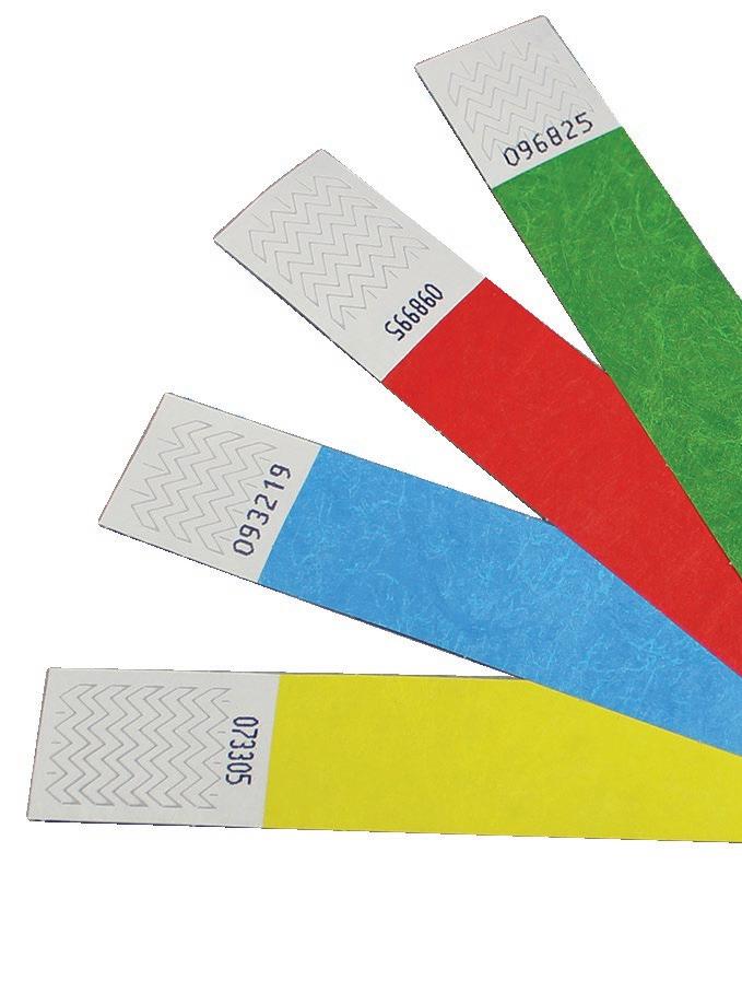 Plain coloured Tyvek security proof wristbands. Sold in 20s. Available in red, green, yellow and blue. Numerous uses. Only 12p each.