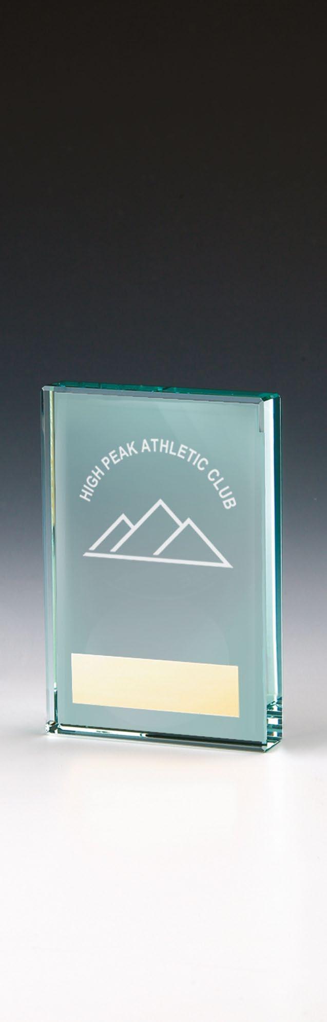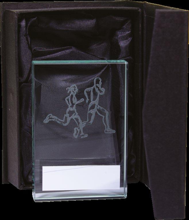 71 Important Please state the date you require your goods by Prices exclude VAT (where applicable) and carriage (if applicable) Orders: order@runningimp.co.uk Enquiries: enquiries@runningimp.co.uk Bespoke Sublimated Thick Jade Glass Blocks Sublimated Thick Jade Glass Blocks New for 2023 these Sublimated Metal Plaques on Premium Thick Jade Glass Blocks, each come with a FREE Deluxe Silk Lined Presentation Case with magnetic lid, making an ideal, cost effective bespoke award, fully personalised to your event or presentation. Available in 3 sizes with no minimum order. There is a once only setting up charge of £15 per logo/crest design (not where wording or position/placings change for different sized blocks). T310G 16.5cm (6.5”) Each £24.99 T310H 14cm (5.5”) Each £23.99 T310J 12cm (4.75”) Each .99