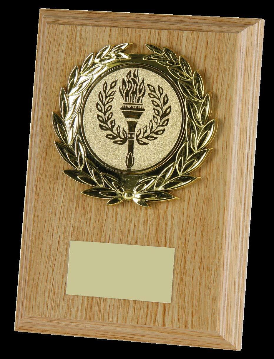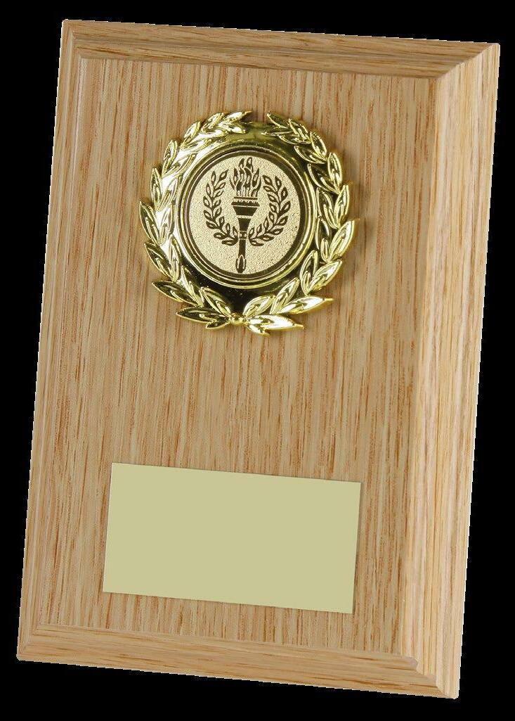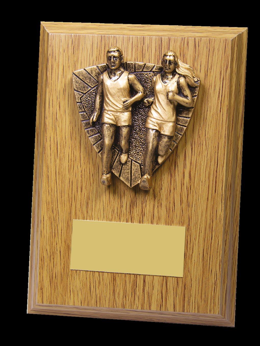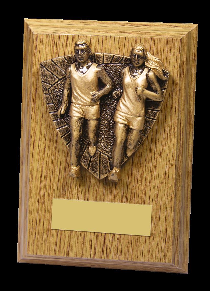 69 Important Please state the date you require your goods by Prices exclude VAT (where applicable) and carriage (if applicable) Orders: order@runningimp.co.uk Enquiries: enquiries@runningimp.co.uk Bespoke Sublimated Dark Oak Plaques Sublimated Dark Oak Plaques New for 2023 these Sublimated Metal Plaques on Dark Oak Wood, make an ideal, cost effective bespoke award, fully personalised to your event or presentation. Available in 3 sizes with no minimum order There is a once only setting up charge of £15 per logo/crest design (not where wording or position/ placings change for different sized blocks). T310D 20cm (8”) Each £14.99 T310E 18cm (7”) Each £13.99 T310F 15cm (6”) Each £12.99