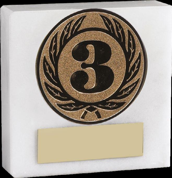 Online at www.runningimp.co.uk Email sales@runningimp.co.uk Orders can be taken: 86 Important Please state the date you require your goods by Prices exclude VAT (where applicable) and carriage (if applicable) T226A 12cm (4.75”) Each £4.99 T226C 17cm (6.75”) Each £4.99 T226G 3” x 3” Marble Each £2.99 T226H 3” x 3” Marble Each £2.99 T226F 11cm (4.25”) Each £4.99 Special Offer Football Trophies & Awards Each trophy, where applicable, comes with a FREE Victory Torch centre or Football centre. Please state preference when ordering. Free Metal Centres T308R 12cm (4.75”) Each £5.50