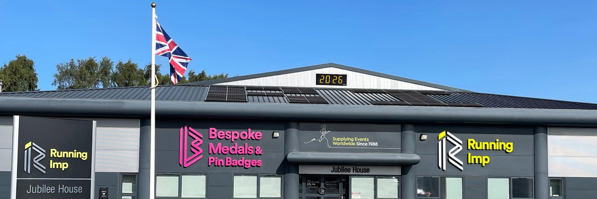 We also care passionately about the environment and sustainability and can now offer 100% recycled medals, ribbons and pin badges and have installed 220 solar panels on our Jubilee House headquarters in Lincoln to become more eco-friendly, see below.