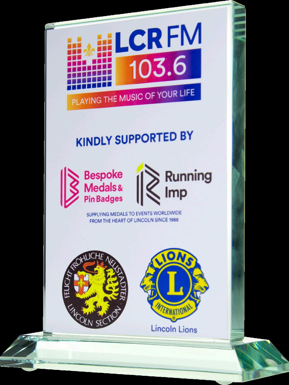 Show your club crest or event logo UV printed on these acrylic awards in full colour.