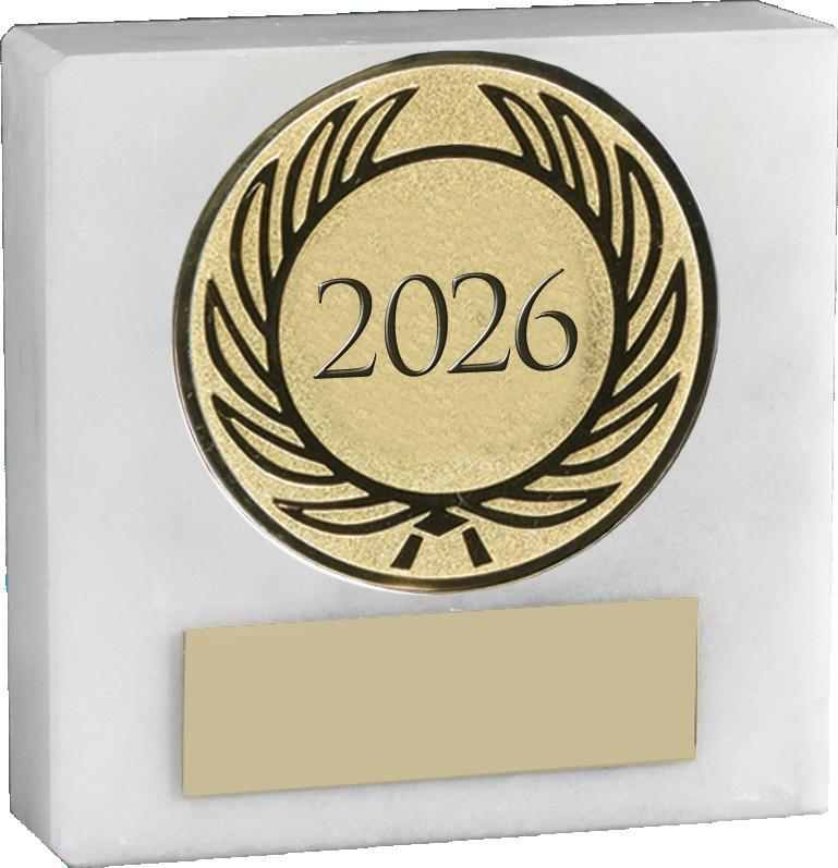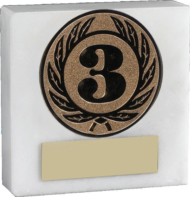 All 3” x 3” Black Marble and White Marble blocks come complete with a 2” foil centre and engraved plate fully assembled FREE of Charge ready to present.