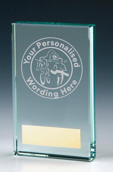 We have 3 different sized glass blocks each can be laser engraved with wording only of your choice around the periphery.