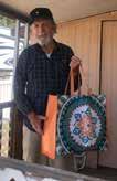 Pasqual Mercado and family at left. At right, he gives his quilt and the entire experience a “thumbs up.”