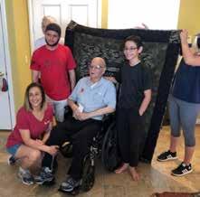 Wrapped in Love with their Quilt of Valor, left to right, Blair Pietrini, Jose Gonzalez, Mark Hunt, Anton Mandarino, Chaplain Doreen, and Mellissa Breunig.
