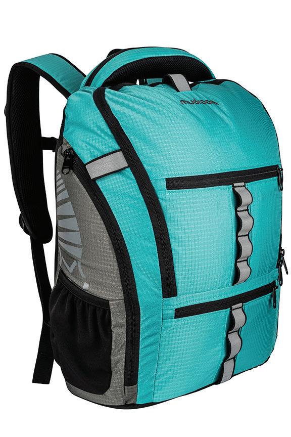 The Mudroom Intermodal otw backpack has a rain cover securely stowed in the carrying handle in a mini-zippered compartment for easy deployment . In addition to the carrying handle that houses a rain cover for the backpack, there is also an escape hatch in the bottom. MSRP: $125