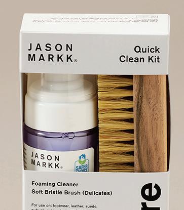 Jason Markk’s Quick Clean Kit pairs its Ready-To-Use Foam Cleaner with its soft bristled Delicates Cleaning Brush to safely clean footwear, leather, suede, nubuck, cotton and knits. MSRP: $20