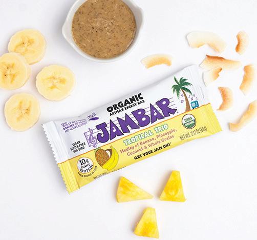 JamBar’s new flavor, Tropical Trio, is a blend of banana, pineapple and coconut. This plant-based bar contains gluten-free grains and walnut butter, along with 10g of protein and 5g of added natural sugars. MSRP: $2.99–$3.49