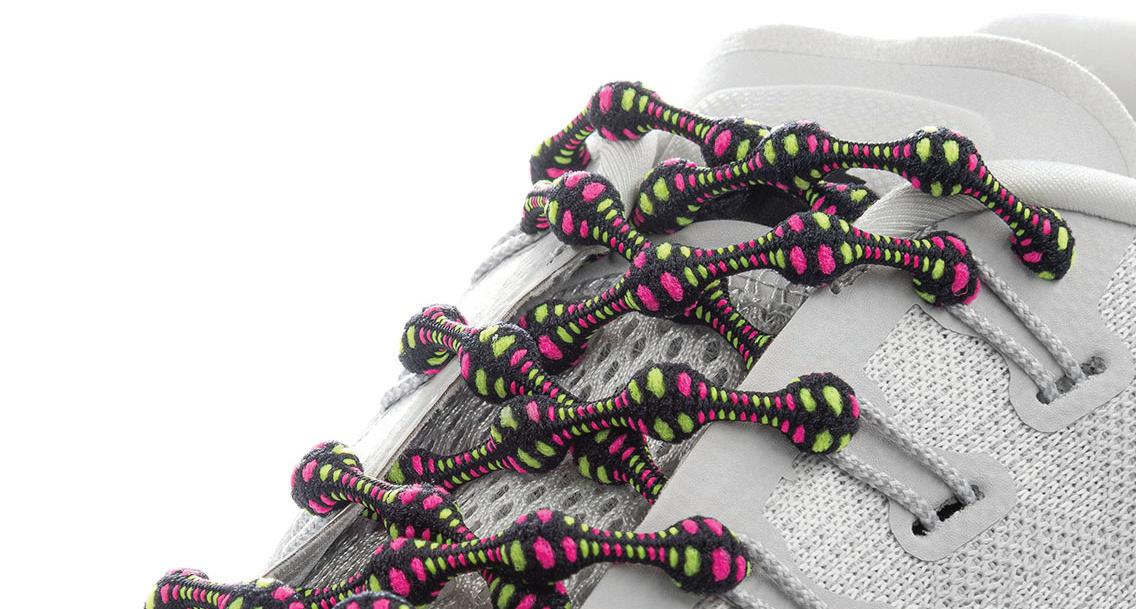 Caterpy Run laces feature an elastic bump technology that holds customized tension throughout all shoe eyelets. Caterpy laces solve all shoelace issues – ranging from inconsistency of tension throughout the shoe, lack of adaptivity for different foot shapes and inconvenience of tying laces.