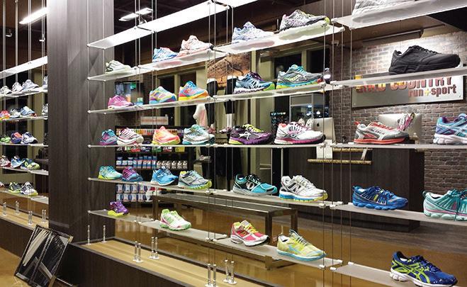 To wit, California-based Gold Country Run + Sport has a cable system in the middle of its store with acrylic shelves displaying its footwear (in photo).