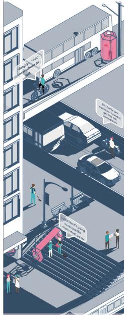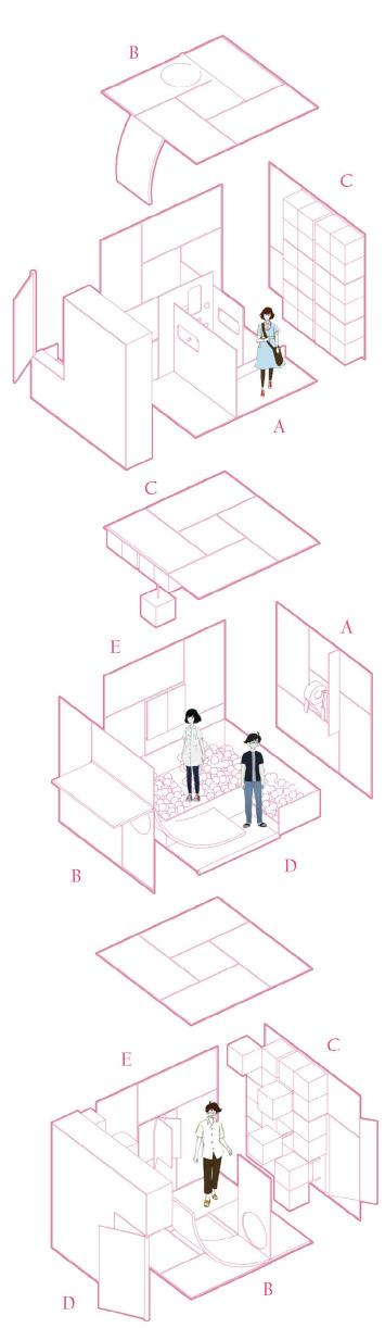 People are always rushing from one place to another in a hurry, walking on the road, an urgent meeting, too late to eat, in a good mood, want to call family and friends, we all need a moment to enjoy our-selves, at this time,some neglected corners in the city can be utilized, and a retractable and movable space is formed. (individual prroject)2022