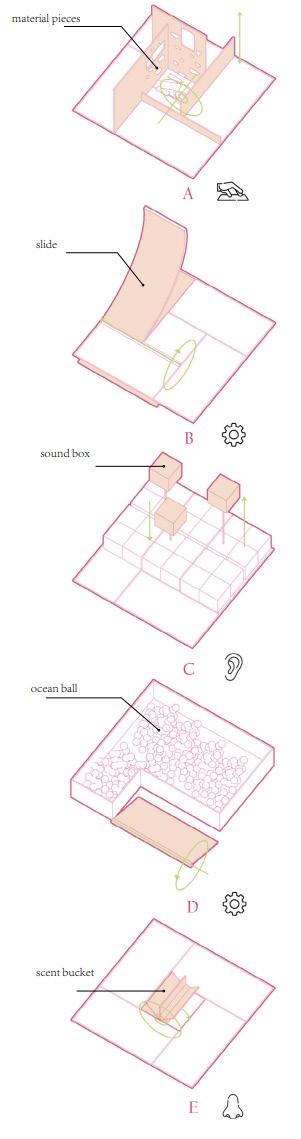 Due to China's epidemic policy, most students who entered university after 2019 experienced a completely different university life. During the epidemic lockdown, university students' campus life was concentrated in electronic screens such as mobile pads and computers, and according to my research and interviews, they all missed or imagined the multi-faceted experience of their university surroundings without the epidemic. So I designed a series of sensory activation devices based on other students' memories of the space around campus, to activate their spatial sensations that they had gradually forgotten during the closure.