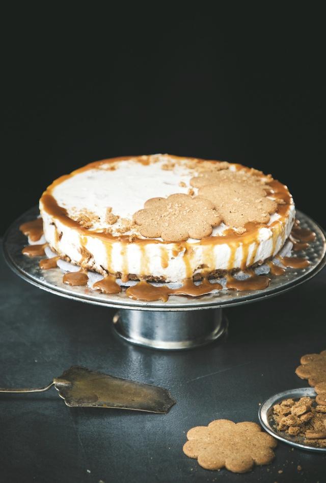 Tämän juustokakun salaisuus on valmiiksi piparkakun makuinen rahka, joka tekee täytteestä pehmeän ja koukuttavan. Piparkakkua löytyy tietysti myös kakun pohjasta ja koristelusta.