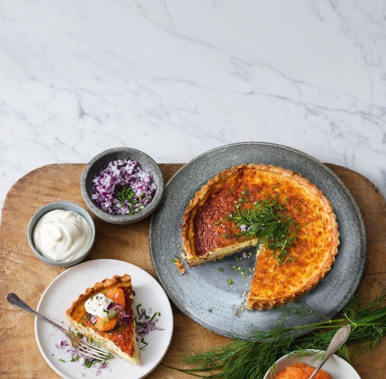 Kokkaa superhelppo peltiruoka arkeen pakastevalkosipuliperunoista ja kylmäsavulohesta. Varma hittiherkku!