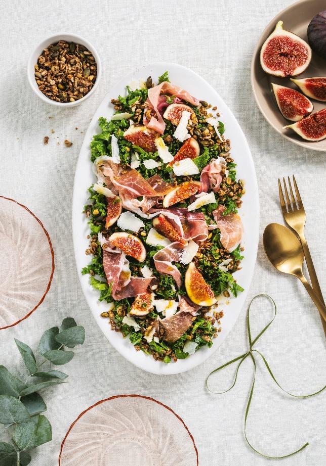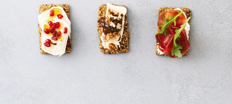Kokoa saaristolaisleivästä, parista täytteestä, viikunoista, viinirypäleistä ja pikkunaposteltavista syötävä kranssi. Lisää ideoita sivulla 12.