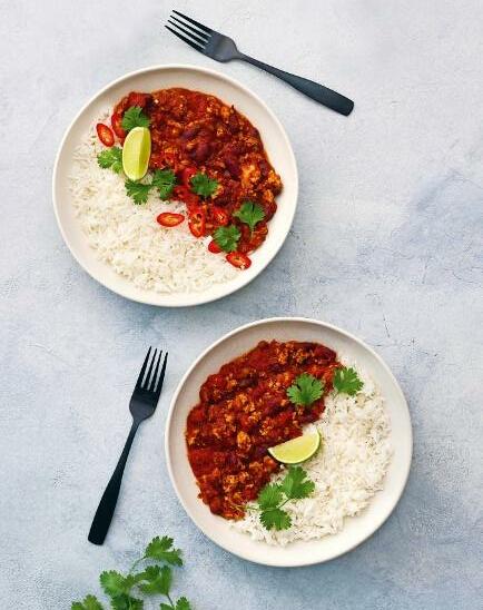 Lempeän mausteinen chili con kana valmistuu nopeasti kanan jauhelihasta ja maustetusta tomaattimurskasta. Tarjoa kastike riisin, nachojen tai tortillojen kanssa.